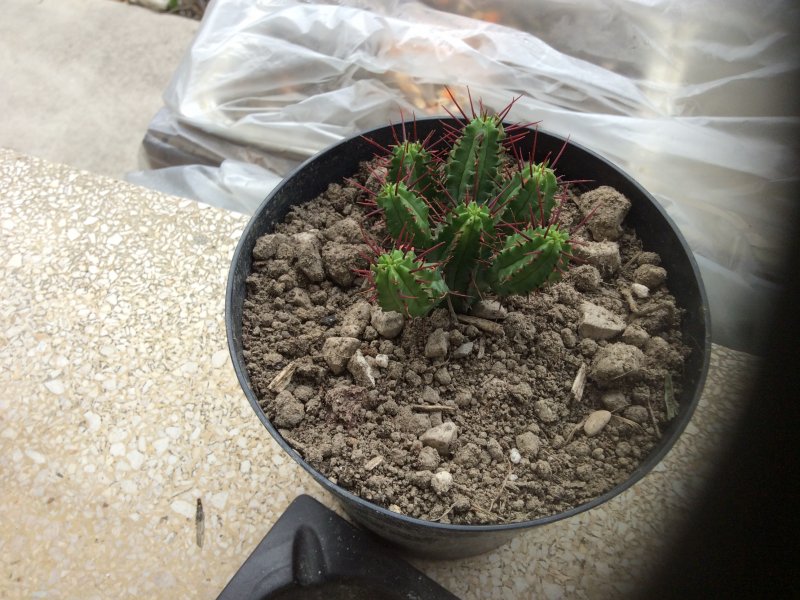 Tornando alle tue piante: sì, dovrebbe essere una Euphorbia enopla, la Parodia è giusta e la prima è una Mammillaria
