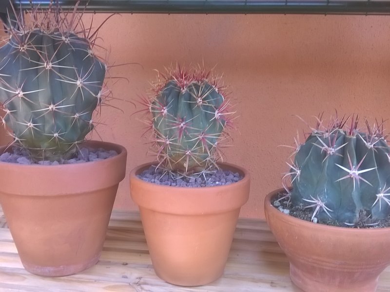 Ho aggiunto da un po' questi tre bomboloni alla mia serra, ora é arrivato il momento di capire cosa sono 😊 quello in mezzo con le spine rossse era cartellinato come ferocactus chrysacanthus ma confrontandolo a ciò vedo in internet mi son venuti diversi dubbi..voi che dite? Le altre due invece? Grazie 😊