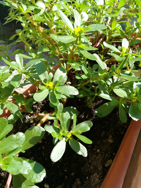 Portulaca oleracea. Le cimette non fiorite si possono consumare nell'insalata con i pomodori.