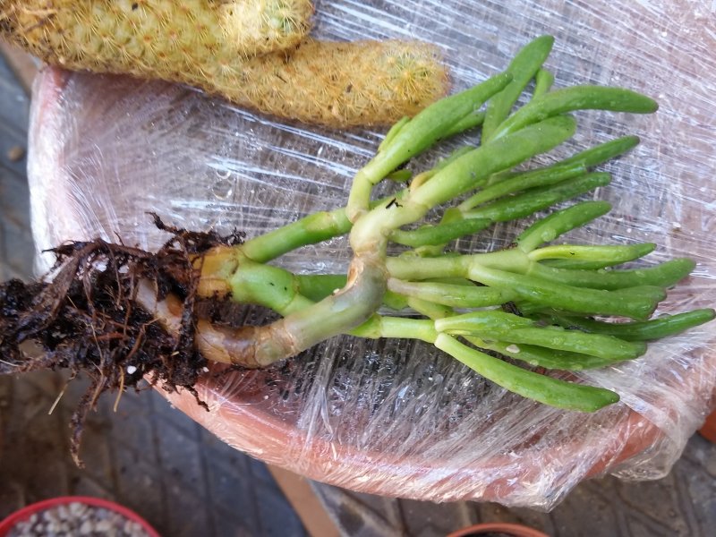 Non so aiutarti, mi dispiace, però potresti in ogni caso rinvasare subito per conto proprio la Mammillaria, composta 1/3 1/3 1/3, ed anche le altre, sempre separatamente ma in composta più organica ... in attesa di sviluppi