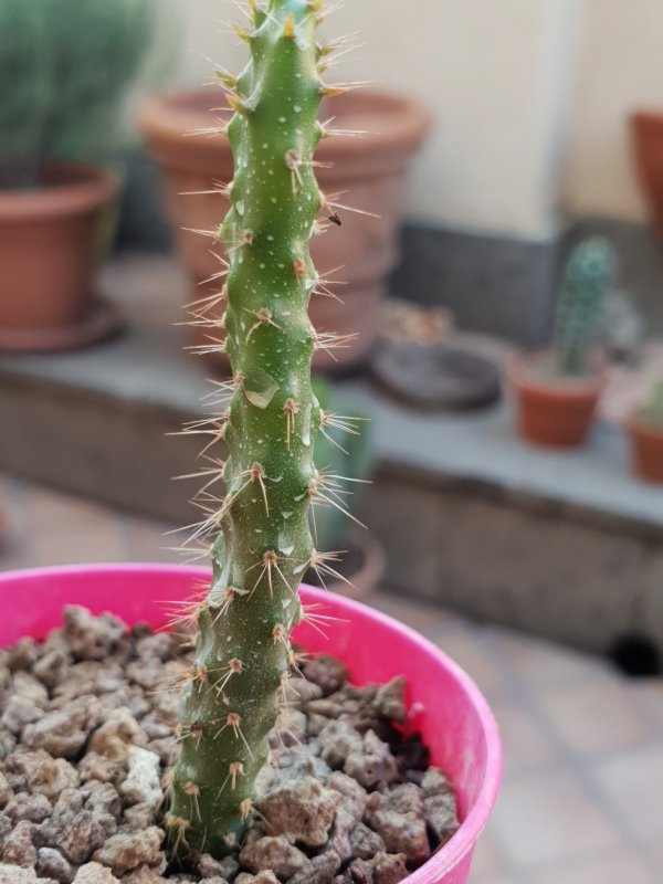 Salve a ragazzi, mi aiutereste a dare un nome a questa opuntia che è nata fine estate scorsa spontaneamente in un vasetto, quindi non so chi sia la madre....grazie