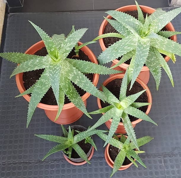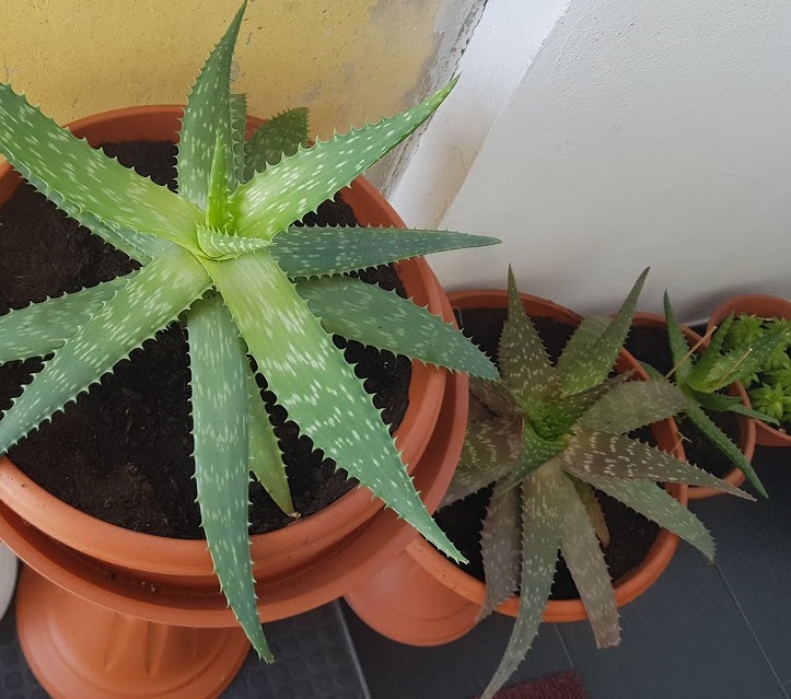 Le due piante più grandi mi sono state donate qualche anno fa, quando erano piccolissime, da una mia collega. Erano polloni della sua Aloe.