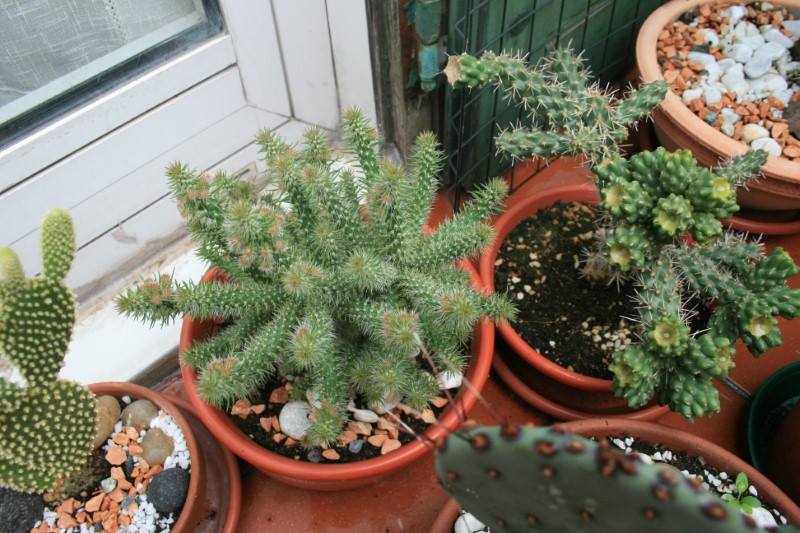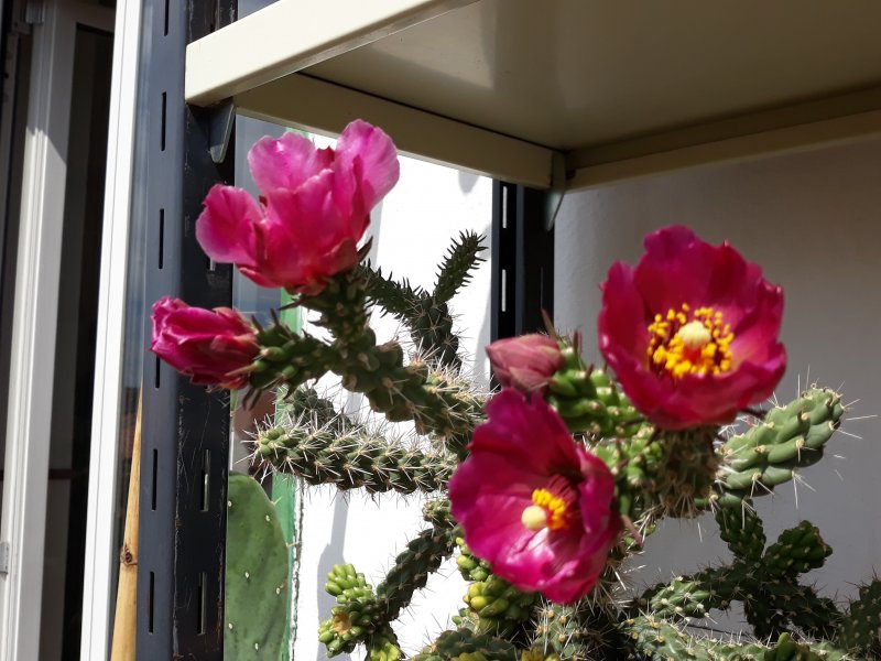 quella che è a destra è una Cylindropuntia imbricata,fa bellissimi fiori fucsia...