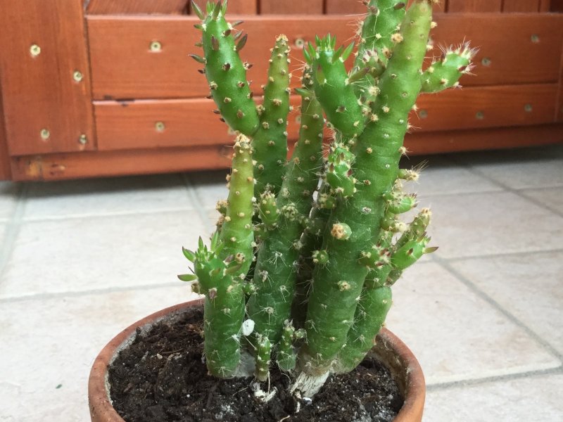 Leggendo qua e là sulle Opuntia cilindriche sembra che l’anno prossimo avrò la conferma che questa pianta sia una Cylindropuntia o un’Austrocylindropuntia. Ho trovato che le prime allungano i rami per una stagione sola, mentre le seconde li allungano indeterminatamente. Ho trovato poi un’altra caratteristica che le dovrebbe differenziare: le prime dovrebbero avere le spine coperte da una pellicola di consistenza simile alla carta. Qualcuno con una Cylindropuntia adulta può confermare questa cosa?